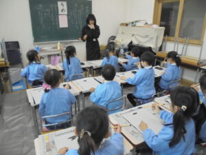 最後の・・・ 今週は、年長組の体育教室、習字教室が最終日となりました。体育教室では、ドッチボールのルールを教えてもらい楽しくゲームをしました。習字教室では姿勢正しく、「うめ」の書く練習をしました。一年間お世話になりました。最後にみんなでお礼の言葉を伝えました。(^▽^)/