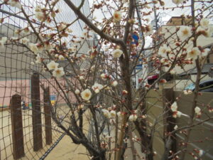 園庭の梅の花も綺麗に咲き始めています。