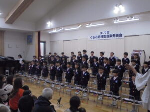 第70回音楽発表会をおこないました。2学期から練習を頑張ってきた成果が発揮でき、素敵な音楽発表会となりました。きれいな歌声、素晴らしい演奏でした。今日はよく頑張りましたね。(^▽^)/