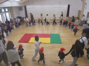 今週は、保育参観日がありました。年少組では「ストップゲーム」、年中組は「ボール送りゲーム」、年長組は「ドッチボール」を親子で行いました。おとうさん、おかあさんと一緒にゲームをすることにワクワクしながら楽しんでいました。